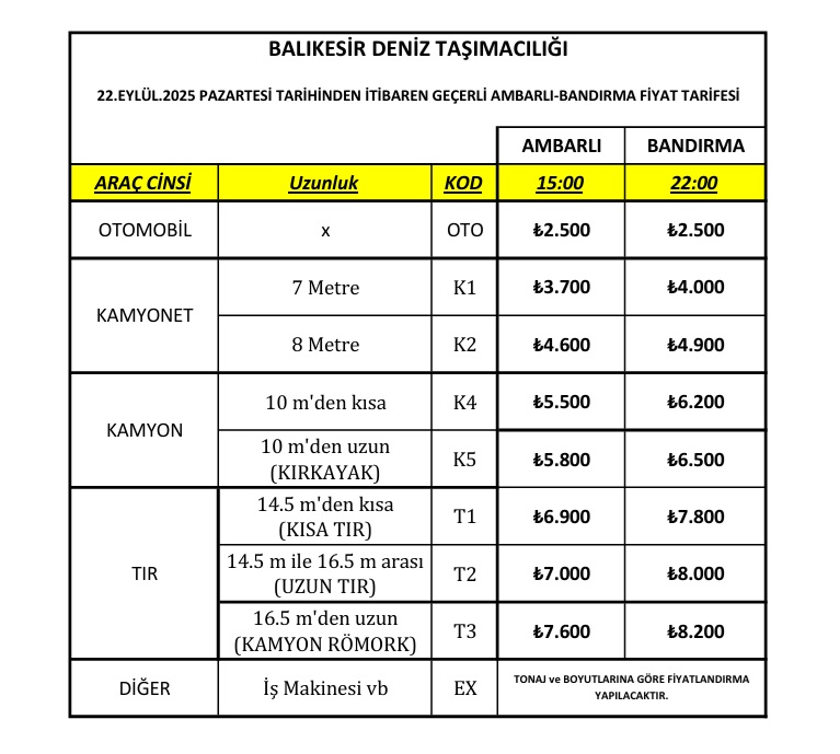 AMBARLI - BANDIRMA ULAŞIMIN ADI YENERCAMBARLI - BANDIRMA hattında hizmet veren YENERC RO-RO, Marmara Denizi Kuzey-Güney hattında zaman ve yakıt tasarrufu sağlayan en kısa mesafeye sahiptir.